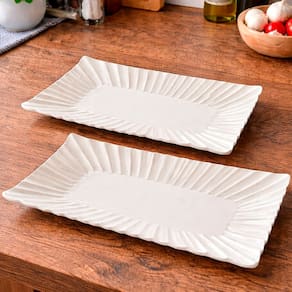 2x Travessa Retangular Em Cerâmica De 24x14cm