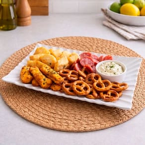 Deixe sua mesa mais bonita e organizada com esta travessa petisqueira retangular em cerâmica. Ideal para servir petiscos, entradas, molhos, frios, doces e pequenas porções com charme e sofisticação