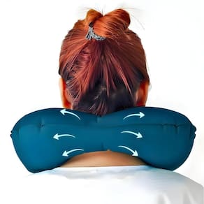 - Relaxamento em casaViaje com conforto absoluto com o Travesseiro Almofada de Pescoço Inflável e Portátil Verde! Design ergonômico em U, infla rapidamente e se ajusta ao seu pescoço, aliviando a tensão muscular em viagens longas ou no escritório. Compacto e leve, ideal para levar na mochila ou mala.