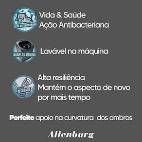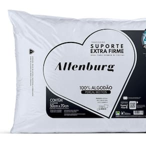 Travesseiro Altenburg Suporte Extra Firme 180 Fios Travesseiro Altenburg Suporte Extra Firme 180 Fios O Travesseiro Suporte Extra Firme é ideal para quem busca um travesseio firme sem deixar de lado o conforto. Indicado para quem dorme de lado, seu recheio é composto por fibra de poliéster. É inodoro e não-alérgico e ainda pode ser lavado e secado em máquina. O recheio do travesseiro Suporte Extra Firme possui selo Vida e Saúde com ação antimicrobiana, contra fungos, ácaros e bactérias