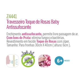 Anti Sufocante 6 Meses Capa Toque de Rosas Para Fronha 30X40 Fibrasca