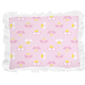 Principais Características: Contém: 1 travesseiro com babado Tamanho: 28 cm x 35 cm Idade recomendada: A partir do primeiro dia de vida Material: Tecido 100% algodão e enchimento 100% poliéster Design: Estampa com a oração do Santo Anjo, trazendo uma mensagem de proteção e carinho Cor enviada para Menina.