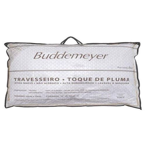 Travesseiro Buddemeyer Toque de Pluma branco. Confeccionado em algodão 233 fios de toque macio e aconchegante. Traz acabamento especial antialérgico, além de alta durabilidade.