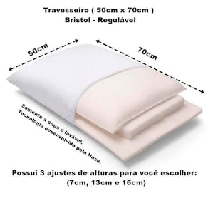 Conteúdo e Medidas: Travesseiro Regulável - Bristol - 01 Peça Tamanho:(0,50cm x 0,70cm)