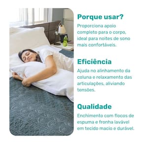 Com fechamento em zíper, é fácil de higienizar e ideal para quem busca mais conforto e alívio de tensões na hora de dormir.