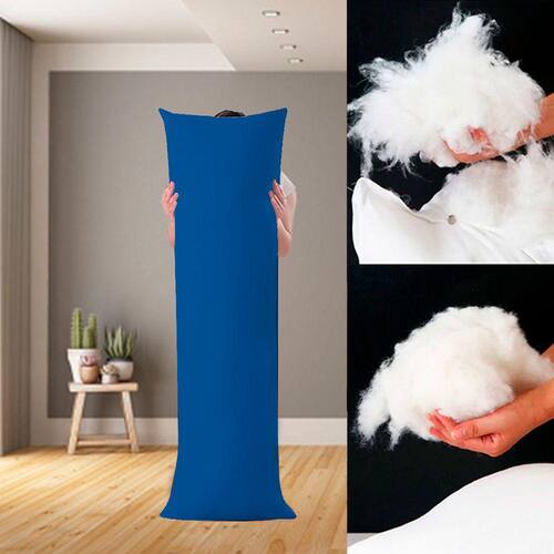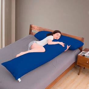 Travesseiro de Corpo Algodão Fibra Plumada Capa Protetora 137x42cm Casa Dona - Azul Royal