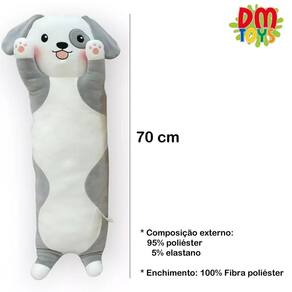 A coleção Amigos do Coração é tão fofa que você vai querer todos Essa pelúcia de cachorro é super fofinha e linda. Ele é ótimo para abraçar, super fofo, e não causa alergia. O seu filho nunca vai querer soltarCaracterísticas:- Material: Externo: 95% Poliéster e 5% elastano. Enchimento: 100% Fibra de poliéster;- Dimensões LxAxC : 17cm x 17cm x 70cm;Especificações:- Marca: DM Toys;- Modelo/Referência: DMT6473.