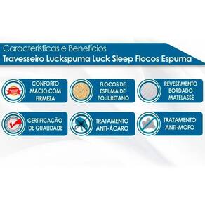Travesseiro Espuma Luck Sleep Flocos Kit c/ 4 Un (45x65x12) - Luckspuma Abaixo segue os produtos do KIT: Travesseiro Espuma Luck Sleep Flocos Kit c/ 4 Un (45x65x12) - Luckspuma Travesseiro Espuma Luck Sleep Flocos (45x65x12) - Luckspuma