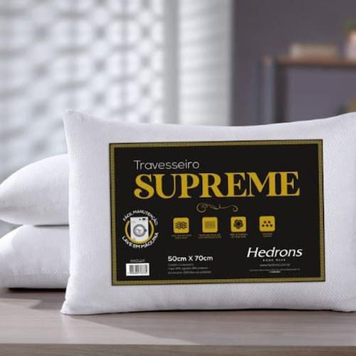 Características: 01 Travesseiro Supreme Dimensões: 50cm x 70cm Tecido: 54% Algodão 46% Poliéster Enchimento: 100% fibra de poliéster