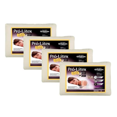 Abaixo segue os produtos do KIT: Travesseiro Látex Slim 4 Unidades p/Fronha 38x58cm (Tamanho 38x58) - Ortobom