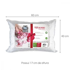 Características: - Fronha : 50x70 cm -não incluso- - Lavável em Máquina - Proteção Íons de Prata -protege de fungos e bactérias- - Malha Dupla Jacquard -Tecido em fio penteado anti/-pilling- - Revestimento 50 por cento algodão e 50 por cento poliéster - Enchimento 100 por cento fibra de poliéster siliconizada - Capa toque de rosas - Não impermeável - Garantia de 03 meses