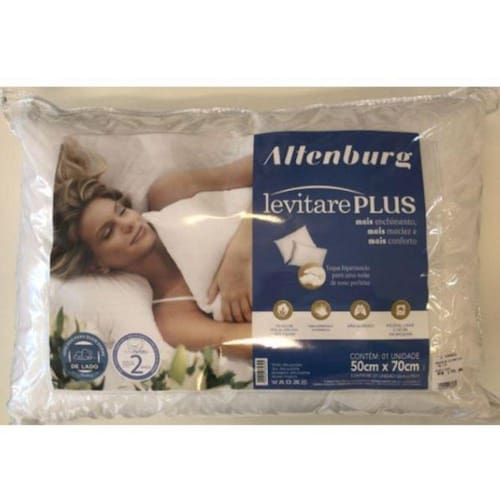 Travesseiro Levitare Plus 50cm x 70cm Altenburg Travesseiro Levitare Plus 50cm x 70cm Altenburg O Travesseiro Levitare Plus é um produto nobre ideal para quem busca por um travesseiro macio mas com suporte. O recheio é composto pela exclusiva Fibra Levitare siliconizada hiperfina e macia que forma uma espécie de nuvem dentro do travesseiro e proporciona extremo conforto para a hora de dormir. O revestimento em percal 200 fios 100% algodão, possui soutache que agrega ainda mais charme ao produto.O travesseiro Levitare Plus é indicado para quem dorme de lado. CARACTERÍSTICAS EXTRAS: Maciez sem igual da fibra Levitare mas com suporte ideal para quem dorme de lado Sensação toque de pluma Soutache que traz beleza ao travesseiro Não alérgico. tamanho: 50cm x 70cmTecido: percal 200 fios 100% algodãoEnchimento: fibra de poliéster siliconizada, hiperfina e extra macia.Marca: altenburg dica: troque seu travesseiro a cada 2 anos