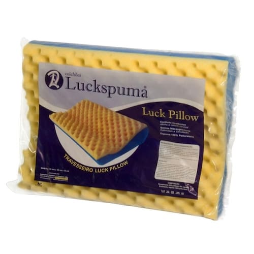 Travesseiro perfilado em formato anatômico, proporciona a posição correta do pescoço e massageia a cabeça.