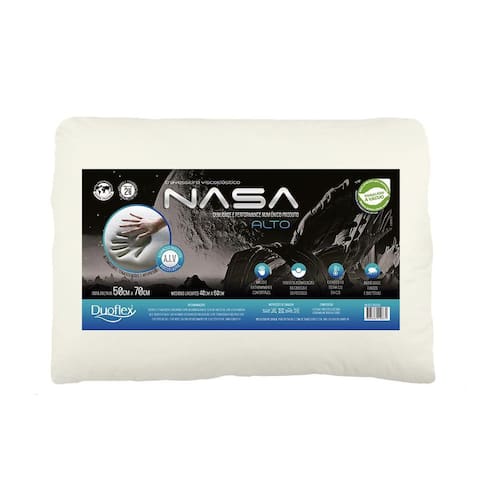 Travesseiro Nasa Alto 50X70X13 Duoflex NASA é uma espuma viscoelástica moldada com alta viscosidade e densidade. Automoldável e termossensível, adapta-se ao contorno e a temperatura do corpo, exercendo menos pressão nas áreas mais quentes ou salientes, facilitando a circulação sanguínea. Além de oferecer maior capacidade de absorção do peso e distribuição equalizada da pressão sobre o corpo, o travesseiro NASA possui a propriedade de retorno lento ou memória, agindo como um verdadeiro amortecedor. A alta qualidade da espuma viscoelástica Duoflex, permite ao travesseiro NASA retornar à sua forma , mesmo após compressão durante o transporte. Tudo isso torna o travesseiro NASA o ideal para a posição natural de descanso, prevenindo dores na cabeça, pescoço, costas, braços e ombros, garantindo um sono restaurador, com total proteção antiácaros, fungos e bactérias. Medidas: 50X70X13