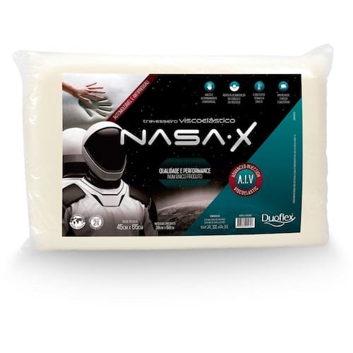 Travesseiro Nasa X Duoflex, Nasa oferece conforto excepcional graças à sua espuma viscoelástica de alta qualidade, que se molda ao corpo e distribui o peso de forma uniforme. Termossensível e com memória de forma, alivia a pressão, melhora a circulação e ajuda a prevenir dores no pescoço, ombros, costas e braços. Retorna à forma mesmo após compressão e garante um sono restaurador com proteção contra ácaros, fungos e bactérias.
