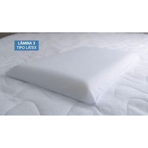 São três lâminas, sendo uma em viscoelástico (Nasa) que se molda aos contornos do corpo e traz a maciez, outra lâmida em Látex que proporciona sustentação para um melhor alinhamento entre o ombro e pescoço e uma terceira lâmina de espuma perfilada com gomos massageadores que traz conforto e relaxamento durante o sono.