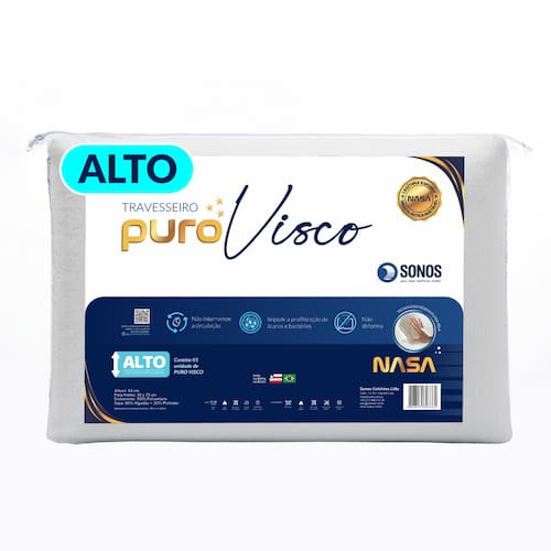 O Travesseiro Puro Visco Alto Sonos – 14 cm foi desenvolvido para oferecer sensação de conforto macio e apoio suave ao deitar. Sua altura elevada proporciona maior volume e sensação de acolhimento, sendo ideal para quem prefere travesseiros mais altos no uso diário.