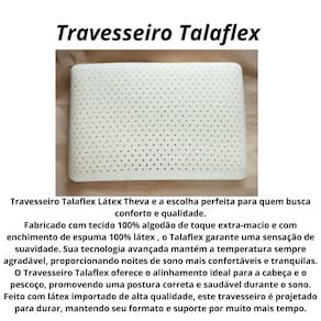O Travesseiro Talaflex Theva é a escolha ideal para quem valoriza conforto e qualidade superior. Com tecido 100% algodão de toque extra-macio, proporciona uma sensação de suavidade incomparável. Graças à sua tecnologia avançada, mantém a temperatura agradável, oferecendo um sono mais tranquilo e confortável. Feito com látex dos EUA de alta qualidade, o Talaflex garante suporte duradouro e alinhamento ideal para cabeça e pescoço, promovendo uma postura saudável durante o sono. Resistente, ele preserva seu formato e suporte por muito mais tempo. Antialérgico, antiácaros e lavável, o Talaflex é também uma opção higiênica e prática. Suas dimensões 50cm x 70cm se ajustam perfeitamente a fronhas de tamanho padrão. Altura: 14cm Experimente o Travesseiro Talaflex Theva e desfrute de um conforto único em todas as noites Marca: Não Informado Ean: 7890100264586