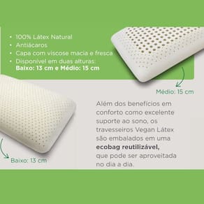 Travesseiro Vegan Látex Perfil Baixo 13Cm Altura Theva