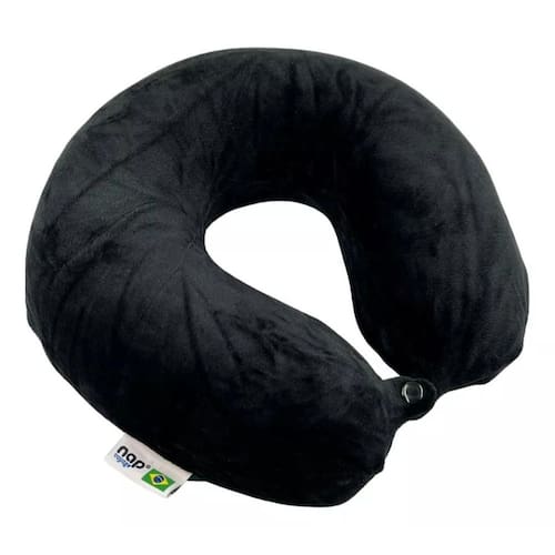 Travesseiro de Viagem Plush Espuma Viscoelastica Nasa Com Botão Preto Nap TRV0524 Travesseiro para Viagem NAP VOYAGE
