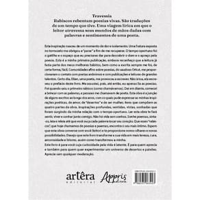 Travessia “Rabiscos rebentam poesias vivas. São traduções de um tempo que tive. Uma viagem lírica em que o leitor atravessa seus mundos de mãos dadas com palavras e sentimentos de uma poeta.” Esta inspiração nasceu de um momento de dor e isolamento. Uma fratura exposta no tornozelo me obrigou a “parar” a fim de me recuperar. O tempo oportuno foi o gatilho e o espaço que eu precisava dar para descobrir o dom e o apreço pela poesia. Esta é a minha primeira publicação, embora reconheço que a leitura já fazia parte dos meus melhores hábitos, bem como a escrita sempre me foi, de certa forma, fácil. Comunidades afins sobre poesias, do saudoso Orkut, me proporcionaram o contato com poetas anônimos e com publicações e leituras de grandes talentos. Certo dia, Elian, uma poeta, me provocou a escrever. Não à toa, ela escreveu o prefácio deste livro. Me assustei, pois, até então, eu apenas lia as poesias. Foi quando saiu o primeiro rabisco (como chamávamos). Daí em diante, comecei a brincar com as palavras, e pessoas me chamavam de poeta. Esta obra é a junção de alguns escritos ao longo dos anos, com os quais pude expressar as minhas inspirações poéticas, de amor, de “desertos” e de ser mulher, itens que compõem as quatro partes da obra. Inspirações profundas, sentidas, vistas, sonhadas que foram surgindo da minha relação com o tempo oportuno. Ler esta obra te fará sentir, viver e sonhar junto comigo. Não há vida sem sonhos. Sonhe poemas, sinta-os, leia e releia até que você ouça cada palavra tocar seu coração. Que esses “rabiscos”, que hoje chamamos de poesias e poemas, encontre o seu mais íntimo. Espero que esta obra converse com você (leitor) e te proporcione novos olhares e novas possibilidades. Desejo que este livro transforme a sua vida em mais leveza, cura, amorosidade e lirismo, assim como transformou a minha. Este livro é para você cuja curiosidade pela vida é latente. É para quem aprecia e também para quem quer experimentar um universo de desertos e paixões. Aprecie sem qualquer moderação.