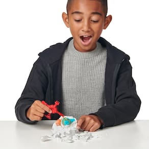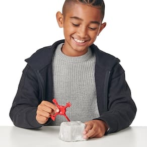 Construa sua ferramenta de escavação especial que agora vem com um pincel, cave e resgate novos Mini Dinossauros e uma coleção totalmente diferente de Tesouros! Desta vez, os Tesouros estão dentro de um fóssil. Use todas as partes de sua ferramenta para abrir o fóssil para descobrir seu tesouro.