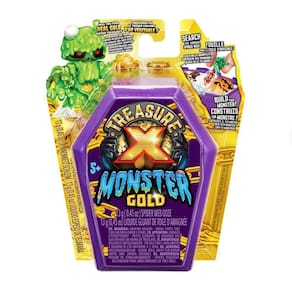 Com o Treasure X - Mini Monster Gold a brincadeira será muito mais assustadora São 8 etapas para descobrir um dos 12 monstros. Para ver qual criatura você tirará é só abrir o caixão para começar essa incrível experiência, ao tirar a placa de teia de aranha, você encontrará as peças para montar o seu monstro. Você ainda pode encontrar uma aranha de ouro. E você pode colocar seu monstro de volta no caixão. Além de poder combinar partes do corpo com outros monstros e criar suas próprias criaturas assustadoras Cada personagem tem 5 cm de altura. A aventura não tem fim com o Treasure X - Mini Monster Gold