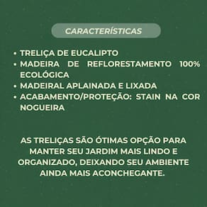 O produto recebe uma cobertura com Stain na cor Nogueira, nosso Stain é a base d´água e contém fungicida, cupinicida e cria película evitando a penetração da água.