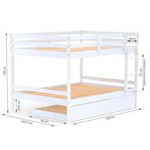 Material Principal: Madeira | Cor Predominante: Branco | Necessita Montagem: Sim | Acompanha Colchão: Não | Tipo de Cama: Treliche | Altura: 148 | Largura: 146,5 | Comprimento: 199 | Peso: 62 | Peso máximo suportado: 220 | Cor Via: Branco | Peso com Embalagem: 62 | Comprimento com Embalagem: 192 | Largura com Embalagem: 0,60 | Altura com Embalagem: 0,55 | Tamanho da Cama: Casal | Descrição do Tamanho: 146,5 x 148 x 199 cm | Quantidade de Volumes: 3