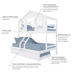 Diferenciais: Auxiliar com Rodízios, Escada com Leve Curvatura, Casinha com fechamento em MDF, Janela e Prateleira Decorativa.