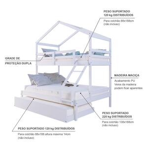 Medidas do Colchão da Cama Auxiliar (cm x cm): 88x188 e Altura Máxima 14 (Não Incluso)