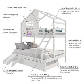 Material Principal: Madeira Maciça | Cor: Branco | Necessita Montagem: Sim | Acompanha Colchão: Nâo | Tipo de Cama: Beliche