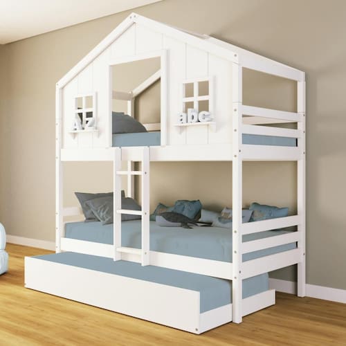 Diferenciais: Escada Fixa, Auxiliar com Rodízios, Casinha com fechamento em MDF, Janela e Prateleira Decorativa.