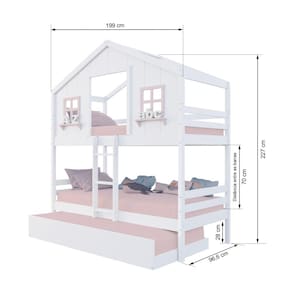 Diferenciais: Escada Fixa, Auxiliar com Rodízios, Casinha com fechamento em MDF, Janela e Prateleira Decorativa.