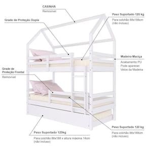Material Principal: Madeira Maciça | Cor: Branco | Necessita Montagem: Sim | Acompanha Colchão: Não | Tipo de Cama: Treliche