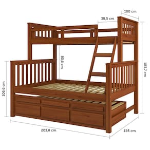 Treliche com Cama de Casal Castanho Claro c/ Cama Auxiliar 3 Gavetas Madeira Pinus - Saraiva