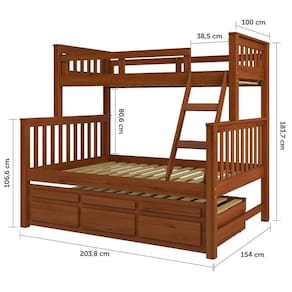 Treliche com Cama de Casal Castanho Claro c/ Cama Auxiliar 3 Gavetas Madeira Pinus - Saraiva
