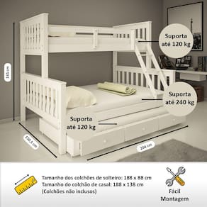 Medidas dos Colchões da Cama Auxiliar (cm x cm): 188x88x14 (Não Incluso)