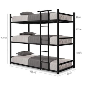 Treliche De Aço Industrial Solteiro 3 Camas Josy - Preto