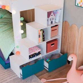 A Treliche Infantil Branco e Azul da Completa Móveis é a escolha ideal para trazer charme, praticidade e funcionalidade ao quarto das crianças. Com escada lateral, oferece segurança e facilidade no acesso à cama superior, enquanto os nichos em cada degrau otimizam o espaço e permitem organizar brinquedos, livros e diversos acessórios. Na parte inferior, duas gavetas ampliam a capacidade de armazenamento, tornando o ambiente ainda mais funcional. A escada pode ser montada tanto do lado direito quanto do lado esquerdo, adaptando-se à disposição do quarto. Para completar, o produto conta com cama auxiliar com rodízios que facilitam a movimentação, proporcionando mais conforto e versatilidade para receber visitas ou garantir momentos de diversão entre amigos. Medidas do produto: largura 231,8 cm, altura 143 cm e profundidade 99 cm.