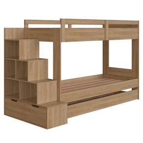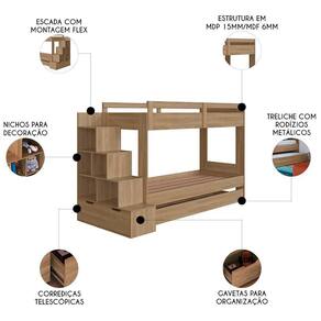 Com sua estrutura em MDP de 15 mm e suportes em madeira maciça, A Treliche Solteiro oferece a durabilidade e a necessárias para o uso diário. A escada lateral, que pode ser montada tanto do lado direito quanto do esquerdo, é um destaque inteligente, pois, além de facilitar o acesso às camas, conta com nichos e gavetas integradas fornecendo mais armazenamento. Este móvel não só proporciona um ambiente organizado e encantador, mas também garante versatilidade com a Cama Auxiliar inclusa, ideal para acomodar visitas. A treliche é uma solução completa para o Quarto Infantil.