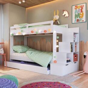 Apresentando a Cama Treliche com Escada da Completa Móveis - a escolha perfeita para tornar o quarto das suas crianças ainda mais charmoso e funcional! Com escadas laterais que proporcionam praticidade na subida e descida dos pequenos, esta cama é projetada para otimizar o espaço e facilitar a organização.