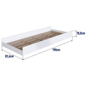 A estrutura da cama é feita em MDP com lastros em MDF, garantindo durabilidade e resistência. Ela é indicada para colchões de solteiro com medidas de 1,88 x 0,78 metros. Além disso, você tem a opção de escolher entre várias combinações de cores para personalizar o produto de acordo com o estilo do quarto.