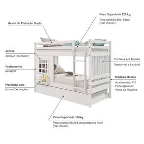 Diferenciais: Escada Fixa, Grade de Proteção Dupla, Auxiliar com 4 Rodízios, Janela com fechamento em MDF e Prateleira para Livros e Decoração, Cortina.