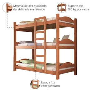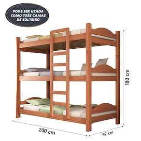 Certifique-se de tudo antes de finalizar a compra, evitando assim futuros desagrados ou imprevistos com a . MEDIDAS:: A = 180 cm L = 92 cm P = 200 cm | MEDIDAS DOS PÉS:: L = 10 cm P = 5 cm | PESO:: 58 kg | PESO SUPORTADO POR CAMA:: 100 kg | TAMANHO DE COLCHÃO:: 0,88m e 0,78m | MODELO:: Treliche Julia | MARCA:: Pederpinus | COR:: Castanho | ACABAMENTO:: Acetinado | MATERIAL:: Madeira Pinus | MEDIDA ENTRE AS CAMAS:: 0,60m | GARANTIA:: 3 meses | DIFERENCIAL:: Escada pode ser montada de ambos os lados. | ALTURA: 180 cm | LARGURA: 92 cm | PROFUNDIDADE: 200 cm | TAMANHO DA CAMA: Solteiro | REQUER MONTAGEM: Sim | TIPO DE CAMA: Cama Cor: Castanho