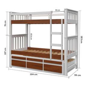 Treliche Solteiro Branco Lavado/Carvalho 3 Gavetas e 1 Escada Madeira de Pinus - Saraiva