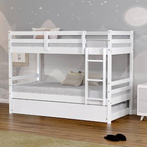 Diferenciais: Todo em Madeira, Escada Fixa, Grade de Proteção Dupla, Auxiliar em madeira/MDF com Rodízios.