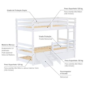 Diferenciais: Todo em Madeira, Escada Fixa, Grade de Proteção Dupla, Grade Removível, Auxiliar com 4 Rodízios e Kit Escadinha/Escorrega.