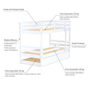 Medidas do Colchão da Cama Auxiliar (cm x cm): 188x88 e Altura Máxima 14 (Não Incluso)