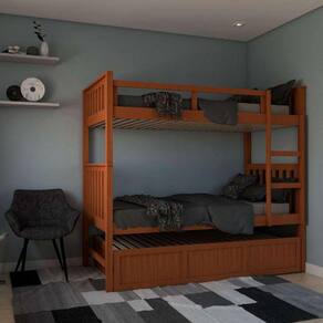 que tal a treliche trevizo?perfeita para otimizar espaços sem deixar o visual de lado, a treliche trevizo esbanja pde e promete ser uma adição incrível para os dormitórios do seu lar. estruturada para acomodar até 3 pessoas, este móvel versátil é uma boa solução para aqueles quartos que são divididos entre irmãos ou se o seu filho costuma receber amigos para passar a noite - o leito mais próximo ao chão se encaixa perfeitamente, favorecendo a segurança e deixando o ambiente mais clean, enquanto o leito mais alto conta com uma escada para acesso. com design clássico e cor que esbanja bom gosto, essa é uma opção excelente para agregar à decoração dos cômodos, tornando a rotina mais agradável e completa. Ean: 7909659116618